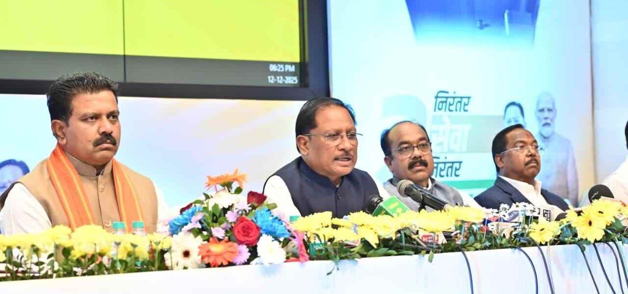 मुख्यमंत्री ने कहा कि विकास की इस गति का लाभ हर नागरिक के जीवन में दिख रहा है। उन्होंने मीडिया के सहयोग के लिए आभार जताते हुए जनता को भरोसा दिलाया कि सरकार पूरी निष्ठा से छत्तीसगढ़ महतारी की सेवा करेगी और सभी से प्रदेश की सुख-समृद्धि के लिए एकजुट योगदान का आह्वान किया। प्रेसवार्ता में डिप्टी सीएम अरुण साव, डिप्टी सीएम विजय शर्मा, वन मंत्री केदार कश्यप, खाद्य मंत्री दयाल दास बघेल, महिला बाल विकास मंत्री लक्ष्मी राजवाड़े, स्वास्थ्य मंत्री श्याम बिहारी जायसवाल, कृषि मंत्री राम विचार नेताम, मंत्री टंक राम वर्मा शामिल रहे।